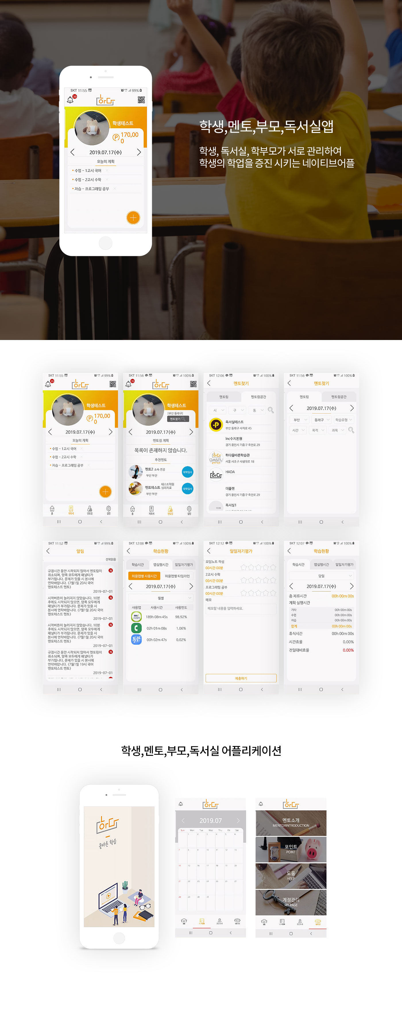 어플리케이션 | 학생,멘토,부모,독서실앱(과외,공부시간관리등)